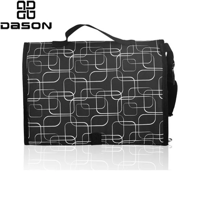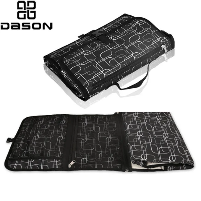 Questo fasciatoio può essere ripiegato per essere appeso al passeggino o attraversare il corpo da tracolla removibile